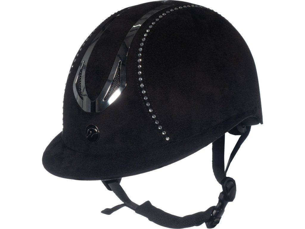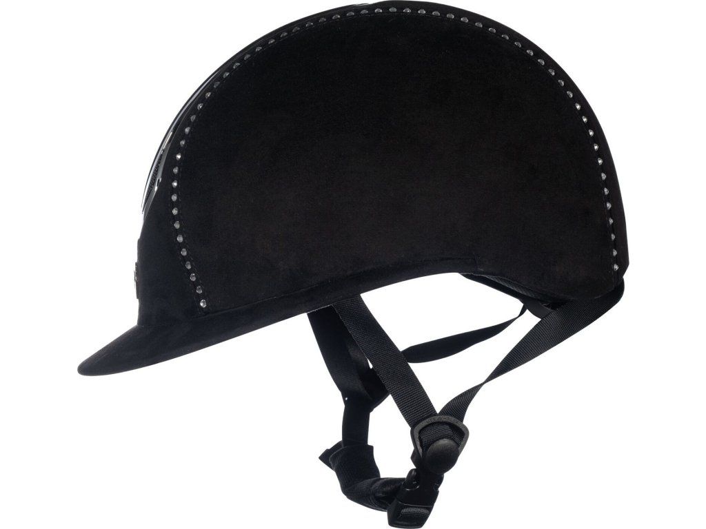 Elegantní bezpečnostní přilba od značky HKM. Vybavena otočným kolečkem v zadní části, které umožňuje upravení velikosti dle potřeby. Opatřena vyjímatelnou podšívkou. Větrací otvory zajišťují ventilaci. Podbradní řemínek je měkce polstrovaný, lze ho jednoduše nastavit. Vhodná na každodenní ježdění i na závody. Helma odpovídá aktuální normě VG1 01.040 2014-12.
