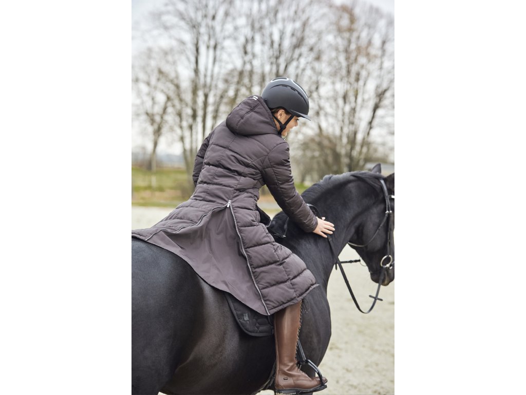 Elegantní bezpečnostní matná přilba od značky EQUIPAGE. Helma je lehká, perfektně sedí a zároveň dobře vypadá. Je vybavena účinným ventilačním systémem v horní části, tří bodové zapínání kolem brady a kolečkem v zadní části. Podbradní řemínek je měkce polstrovaný. Přepínatelný horní ozdobný rám s kovovým vzhledem v barvě CHROME GUN METAL. Helma má navíc vyjímatelnou a pratelnou podšívku. Vhodná na každodenní nošení i na závody. Helma odpovídá aktuální normě VG1 01.040 2014-12. K dispozici ve velikosti S, M a L.