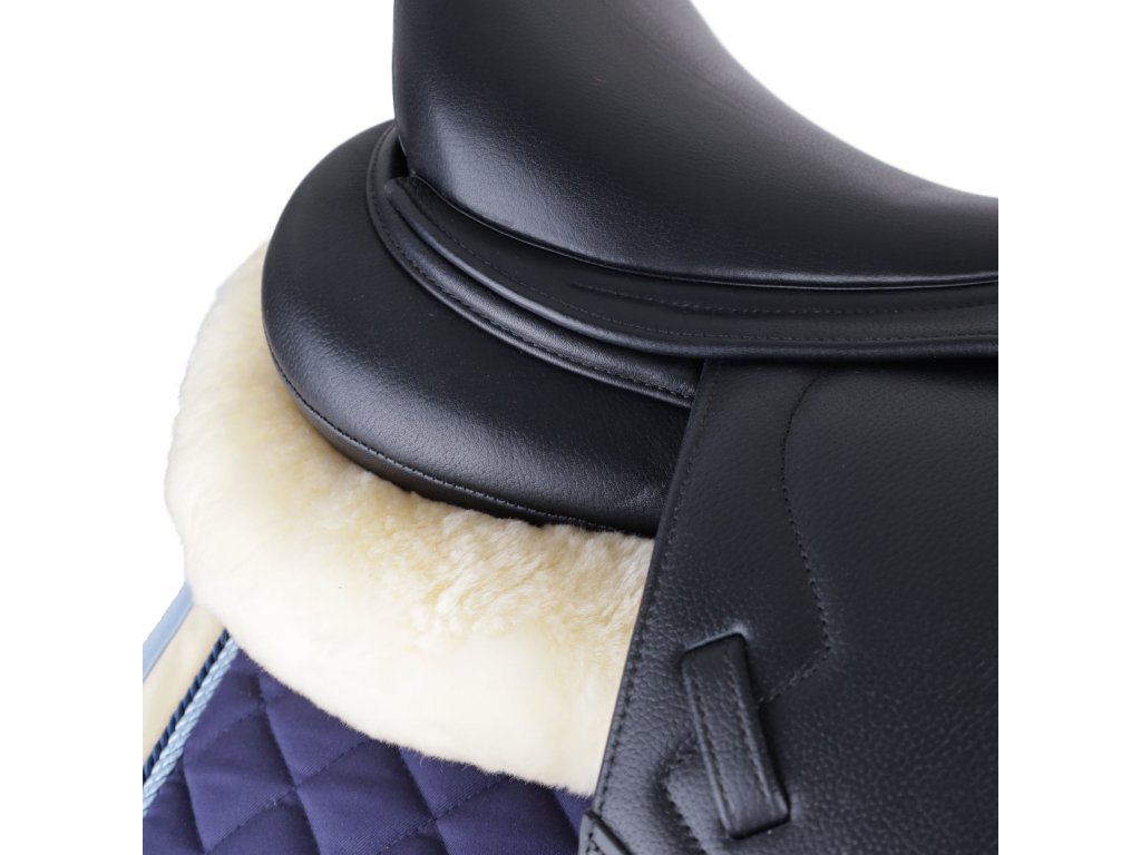 Ergonomická gelová dečka Front Balance se syntetickým beránkem po okrajích. Dečka umožňuje, díky anatomickému tvaru a postupně se zvětšující tloušťce v přední části, vhodné umístění a vyvážení sedla. Uprostřed je tloušťka gelové dečky snížena, aby se lépe přizpůsobila kohoutku a hřbetu koně. Šestihranná 3D struktura zajišťuje vynikající tlumení nárazů, zmírnění tlaku a rozložení tlaku na zádech koně. Výborná cirkulace vzduchu a rychlejší odvod vlhkosti je zajištěn pomocí perforace. Další výhodou je povrchová struktura, která neklouže. Dečka navíc vytváří masážní efekt. Celková délka 55-56,5 cm, dostupná ve skokovém a drezurním provedení. Lze prát v pračce na 30° nebo ručně s trochou pracího prostředku. Nevystavujte přímému teplu. Nechte uschnout na vzduchu. Vyrobeno v Itálii.