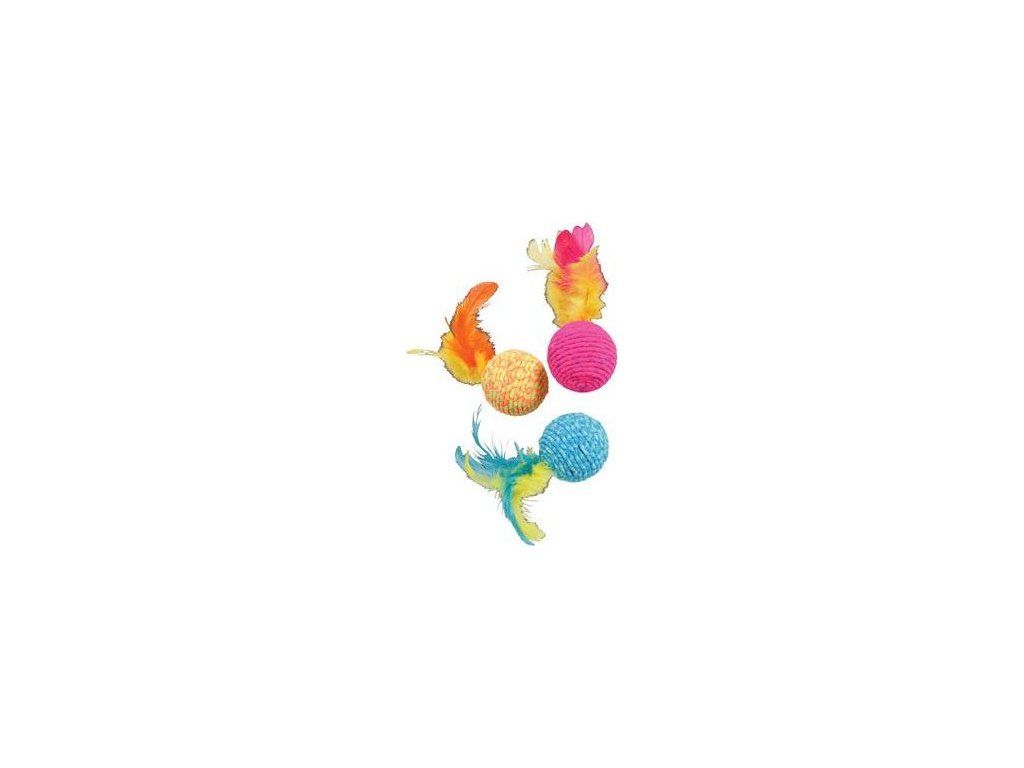 Míček s peřím pro zábavu vaší kočičky. Rozměry: 50 x 45 x 110 mm. Náhodná barva.