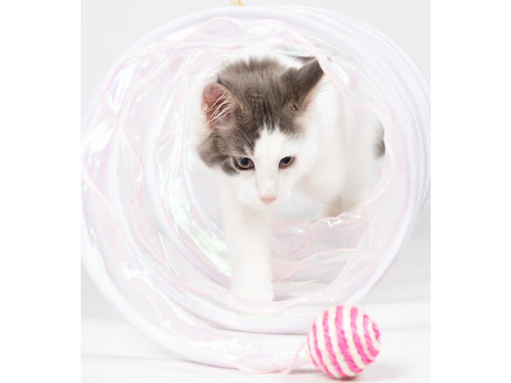 Skládací tunel s integrovanými hračkami. S tímto skládacím hracím tunelem dopřejete své kočce hodiny zábavy. Tunel obsahuje míček, rolničku a peříčka pro extra zábavu. Vyroben z plastu.