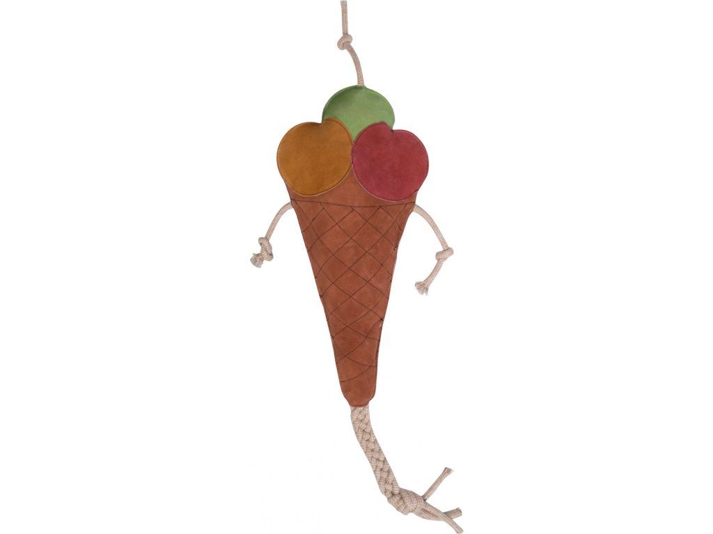 Kvalitní hračka pro koně ve tvaru zmrzliny, která zabaví koně během času stráveného ve stáji. Celková délka i s provazem je 108 cm, šířka cca 30 cm. Hračka je vyrobena z vysoce odolného materiálu, ze směsi kůže a juty. Její výplň je 100% juta.