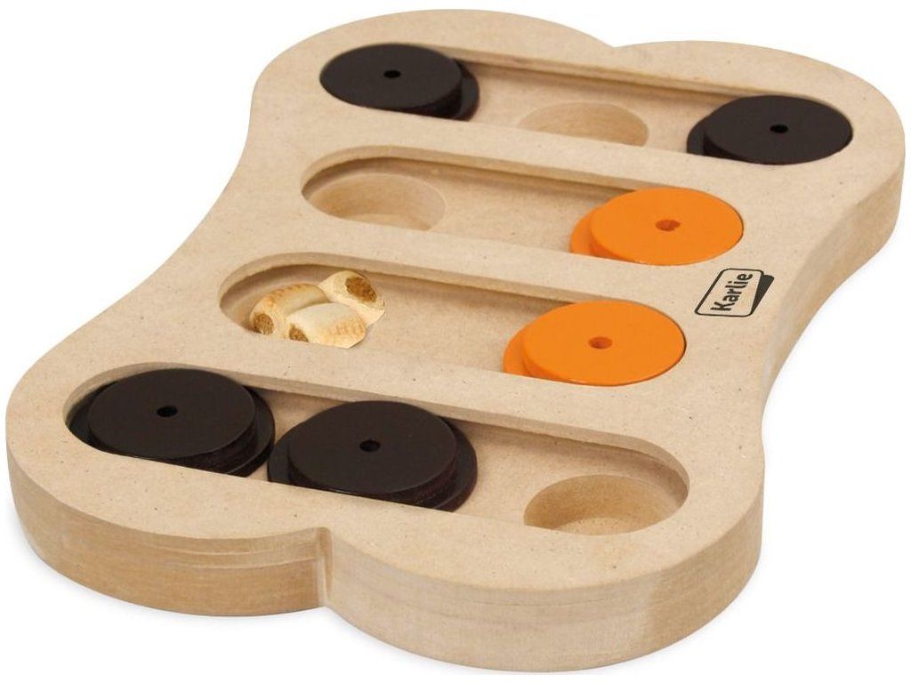 Tato interaktivní hračka upoutá pozornost, zbystří smysly, postřeh i vytrvalost Vašeho čtyřnohého kamaráda. Vložte jeho oblíbené pamlsky do hlavolamu a vzrušující hra může začít! Hračka je vyrobena ze dřeva a je ideální zábavou pro každé roční období. Motivace prostřednictvím pamlsků a přímých odměn při řešení úkolů. Mnoha psům se nedostává dostatek psychických a fyzických stimulů, nudí se a mohou se u nich projevit i poruchy chování. Společná hra a interakce pomáhá nejen vztahu psa s jeho pánem, ale také podporuje dobré chování psa.