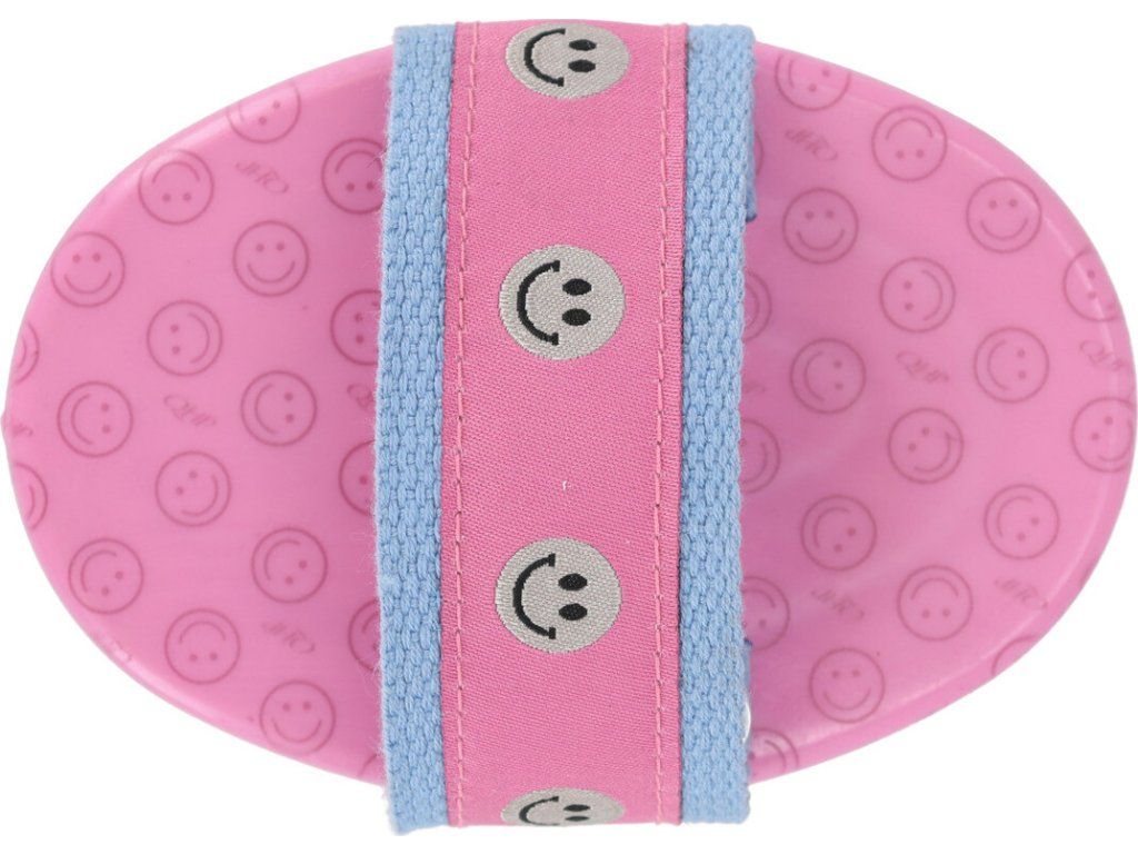 Plastové hřbílko s celoplošným potiskem smajlíků a nylonovým páskem zdobeným smajlíky pro pohodlné a jisté uchopení. Vhodné pro účinné odstranění uvolněné srsti během línání.