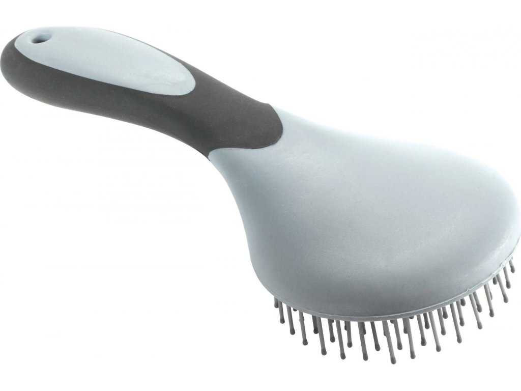 Kulatý kartáč, který jemně rozčesává hřívu, zatímco pružné štětiny účinně odstraňují zacuchání. Pohodlná protiskluzová rukojeť zajišťuje snadné a komfortní používání. Vyrobený z PVC.
