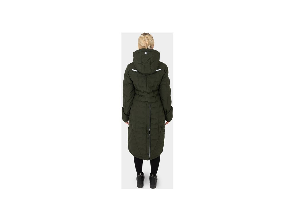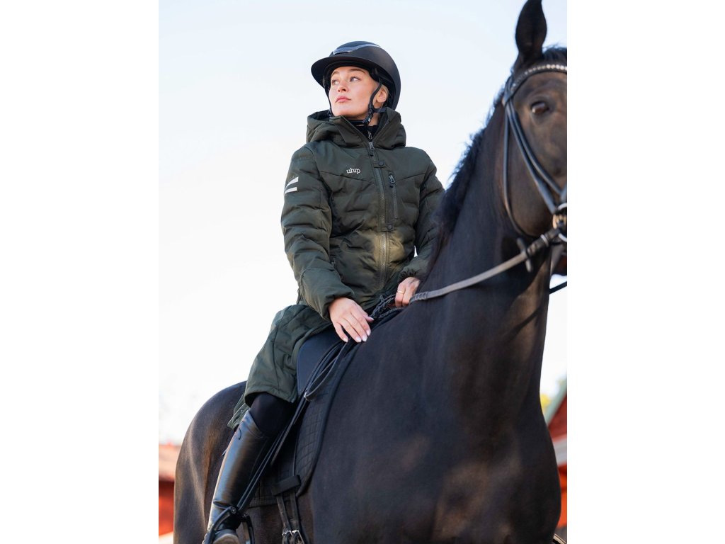 Velice teplý zimní kabát od švédského výrobce UHIP. Ice kabát je ideální volbou, pokud strávíte hodně času venku a potřebujete outdoorové oblečení, které zahřeje a zároveň ochrání před deštěm. Tento kabát je výbornou volbou na zimu nejen do sedla, stáje, ale i do města. Délka kabátu sahá po kolena a sportovní střih je přizpůsobený ženským křivkám. Jeho široký rozsah funkcí byl řádně testován, a proto vytváří každý den ve stáji mnohem jednodušší a příjemnější. Vysoký rozparek v zadní i přední části zajišťuje svobodu v pohybu při ježdění. Kabát je vybaven obousměrným předním zipem a praktickými kapsami. Dále vysokým útulným límcem, odnímatelnou kapucí a rukávy, které mohou sloužit jako rukavice a lze je vyhrnout dle potřeby. Pro fixaci kabátu na svém místě jej můžete pomocí elastických popruhů připnout kolem stehen.