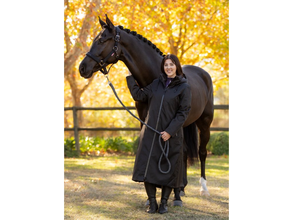 Dámský dlouhý kabát z voděodolné keprové tkaniny s hřejivou podšívkou z umělé kožešiny vás spolehlivě ochrání před nepříznivém počasí. Díky voděodolnosti 12 000 mm a prodyšnosti 8 000 g/m² je ideální volbou do deště, větru i chladných dnů. Kabát je zcela nepromokavý díky plně podlepeným švům a manžetám odolným proti větru. Odnímatelná, nastavitelná kapuce a ventilační otvory vpředu i vzadu zajišťují optimální regulaci teploty a pohodlí při pohybu. Fleecem podšité kapsy na zahřátí rukou a spodní kapsy na zip pro bezpečné uložení drobností. Dvoucestný přední zip poskytuje maximální flexibilitu při chůzi i ježdění, zatímco zadní rozparek umožňuje pohodlné nošení kabátu přes sedlo. Voděodolná PFC-free keprová tkanina kombinuje funkčnost s nadčasovým vzhledem, což z kabátu dělá ideální volbu pro vyjížďky v dešti, práci kolem stáje i každodenní nošení. Technicky propracovaný, a přitom pohodlný kabát, který se rychle stane vaším nepostradatelným kouskem v šatníku.