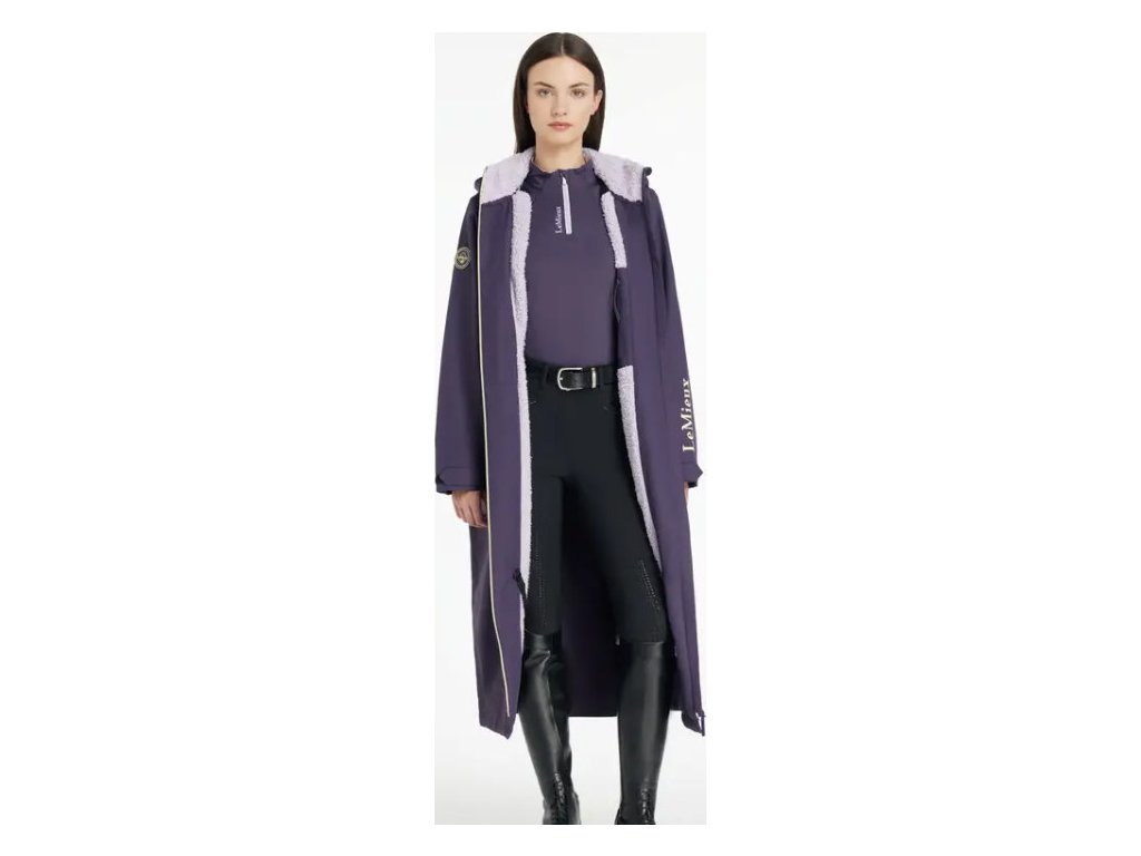 Dámský dlouhý, oversized voděodolný kabát s fleecovou podšívkou odvádějící vlhkost je navržen tak, aby se dal snadno přehodit přes oblečení. Je ideální pro jízdu na koni, převlékání po tréninku, práci ve stáji i běžné pochůzky. Díky voděodolnosti 12 000 mm, plně podlepeným švům, vnitřním manžetám proti větru a odnímatelné kapuci poskytuje spolehlivou ochranu i v silném dešti. Prodyšnost 10 000 MVP zajišťuje dostatečnou cirkulaci vzduchu, takže je kabát vhodný i pro náročnější fyzickou aktivitu bez rizika přehřátí. Praktické hluboké kapsy na zip nabídnou dostatek prostoru pro zahřátí rukou i uložení drobností. Dvoucestný přední zip umožňuje maximální flexibilitu při pohybu a zadní rozparek zajišťuje pohodlné nošení kabátu přes sedlo. Na vnitřní straně je kabát vybaven poutky na stehna, která jej při jízdě fixují, takže nevlaje a nepřekáží v sedle. Odolná PFC-free vnější tkanina je ideální pro každodenní použití v jezdeckém prostředí. Design kabátu doplňuje výrazný potisk značky LeMieux. Perfektní volba, když potřebujete zůstat v suchu i nepříznivém počasí.
