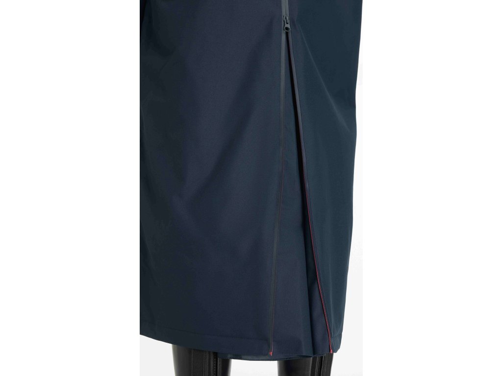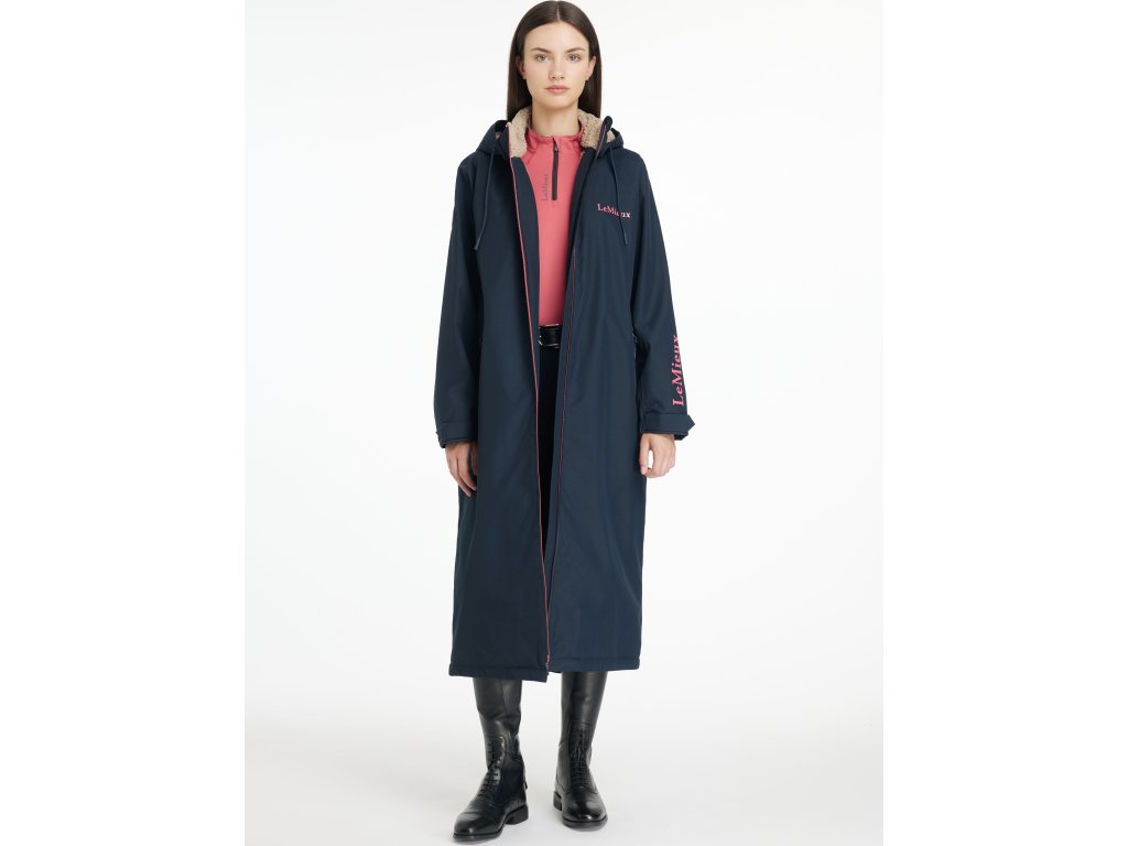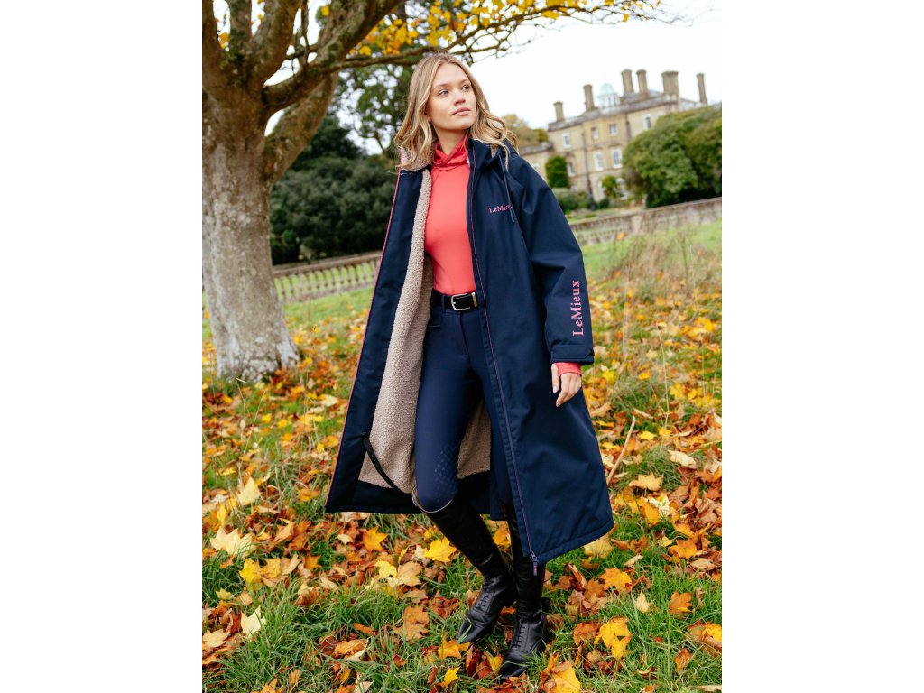 Dámský dlouhý, oversized voděodolný kabát s fleecovou podšívkou odvádějící vlhkost je navržen tak, aby se dal snadno přehodit přes oblečení. Je ideální pro jízdu na koni, převlékání po tréninku, práci ve stáji i běžné pochůzky. Díky voděodolnosti 12 000 mm, plně podlepeným švům, vnitřním manžetám proti větru a odnímatelné kapuci poskytuje spolehlivou ochranu i v silném dešti. Prodyšnost 10 000 MVP zajišťuje dostatečnou cirkulaci vzduchu, takže je kabát vhodný i pro náročnější fyzickou aktivitu bez rizika přehřátí. Praktické hluboké kapsy na zip nabídnou dostatek prostoru pro zahřátí rukou i uložení drobností. Dvoucestný přední zip umožňuje maximální flexibilitu při pohybu a zadní rozparek zajišťuje pohodlné nošení kabátu přes sedlo. Na vnitřní straně je kabát vybaven poutky na stehna, která jej při jízdě fixují, takže nevlaje a nepřekáží v sedle. Odolná PFC-free vnější tkanina je ideální pro každodenní použití v jezdeckém prostředí. Design kabátu doplňuje výrazný potisk značky LeMieux. Perfektní volba, když potřebujete zůstat v suchu i nepříznivém počasí.