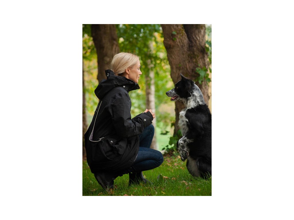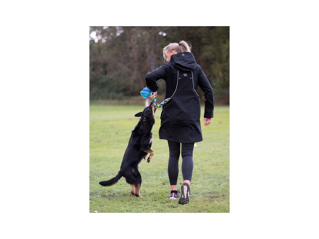 Vysoký límec zajišťuje teplo a odnímatelná kapuce je nastavitelná vpředu i vzadu pro optimální přizpůsobení. Manžety na rukávech lze přetáhnout přes ruce, aby chránily před deštěm a chladem. Vnitřní rukávy mají otvory na palce. Vše, co pejskač potřebuje pro výcvik v jakémkoliv počasí.