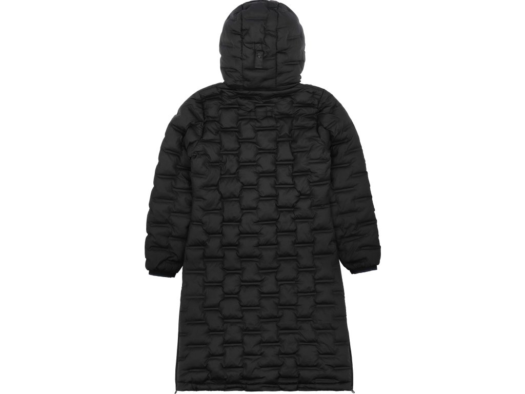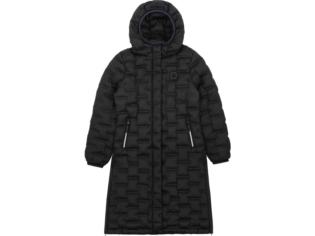 Dlouhý teplý kabát, který spojuje ochranu, praktičnost a eleganci v jednom. Díky vodoodpudivé úpravě DWR (Durable Water Repellent) vás spolehlivě ochrání před nepříznivým počasím. Kapuce i manžety jsou zakončeny elastickým lemem, což zajišťuje pohodlné padnutí a lepší izolaci. Praktické prvky zahrnují dvoucestný zip vpředu, boční rozparky na zip o délce 45 cm a přední kapsy na zip. Kapuci lze upevnit na zadní straně, aby nepřekážela při jízdě. Elegantní střih doplňuje odznak na rukávu a decentní označení „Equithème Je t’aime“ na přední straně.