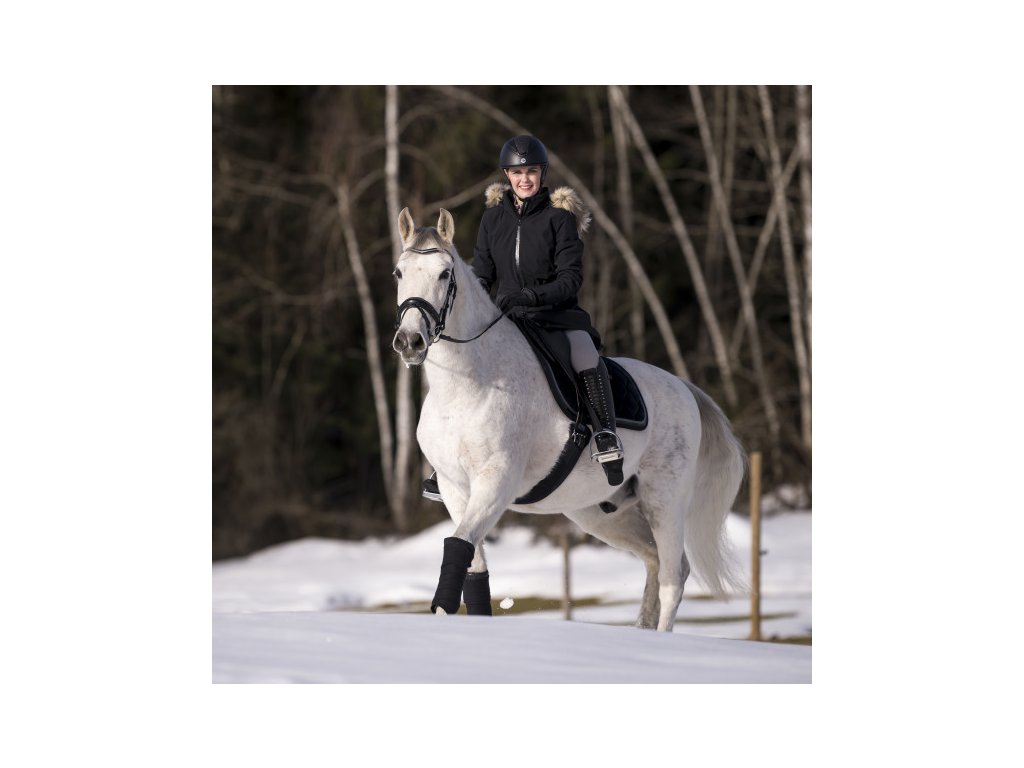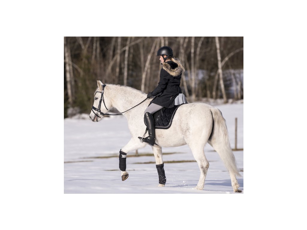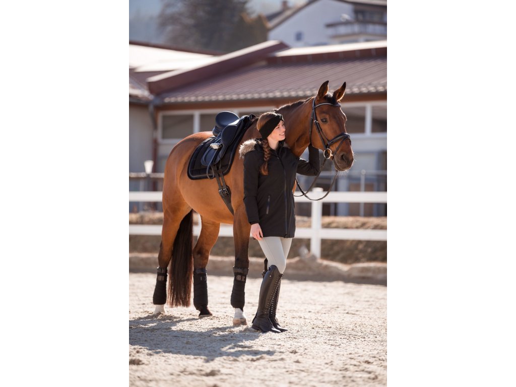 Velmi elegantní dámský kabát s lehkou výplní, vhodný do chladných zimních dnů. Vhodný jak na ježdení, tak i pro mnoho dalších příležitostí.