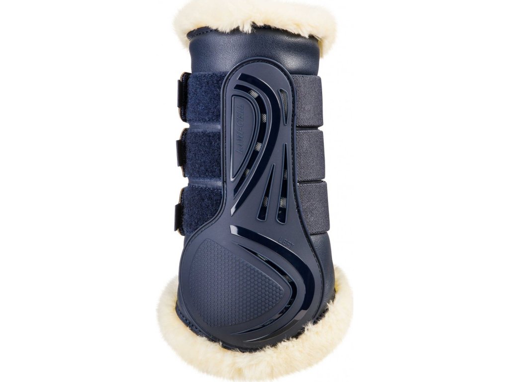 Drezurní kamaše vhodné pro přední i zadní nohy poskytují spolehlivou ochranu šlach a zároveň účinně tlumí nárazy. Povrch tvoří kvalitní syntetická kůže, která působí elegantně a zároveň je praktická na údržbu. Ergonomický tvar zajišťuje perfektní přilnutí ke koňské noze a rovnoměrné rozložení tlaku. Vnitřní strana kamaší je opatřena měkkým syntetickým beránkem, který je šetrný a pomáhá předcházet odírání. Neoprenová podšívka účinně absorbuje nárazy a zvyšuje celkovou ochranu nohy. Kamaše se snadno upevňují pomocí tří pevných suchých zipů. Jedná se o ideální volbu pro jezdce, kteří hledají funkční a zároveň elegantní řešení s důrazem na pohodlí koně i snadnou údržbu. Kamaše jsou vhodné na přední i zadní nohy. Cena je uvedena za jeden pár.
