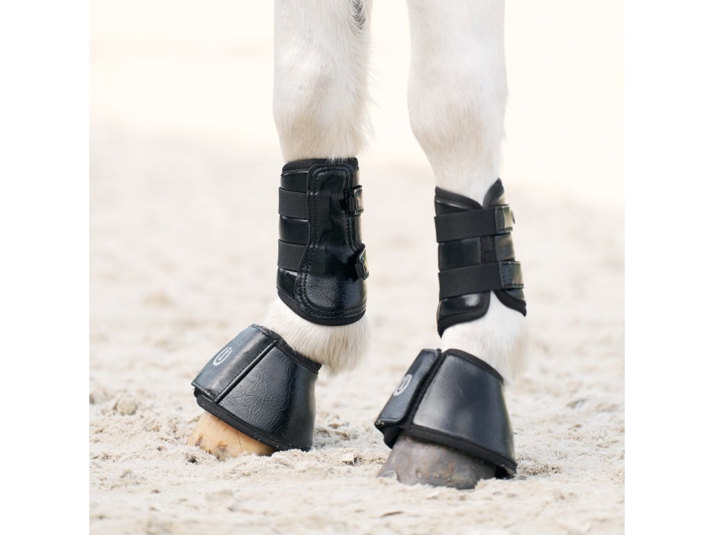 Pár ochranných kamaší na zadní nohy z eco-kůže, olemovány ekologickou vlnou, vhodné na drezuru, velmi pohodlné, zabrání odírání nohou, trojité zapínání na suchý zip. Kolekce...