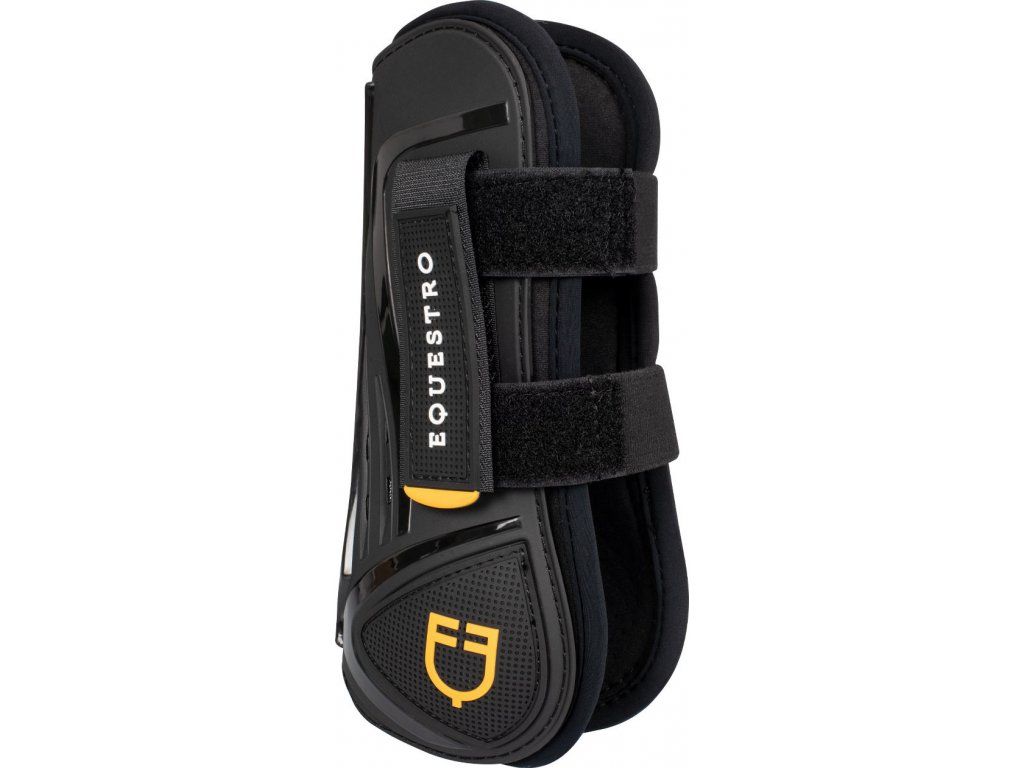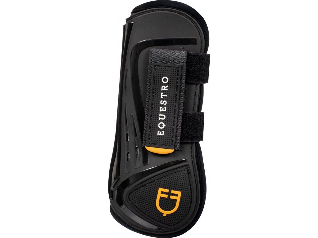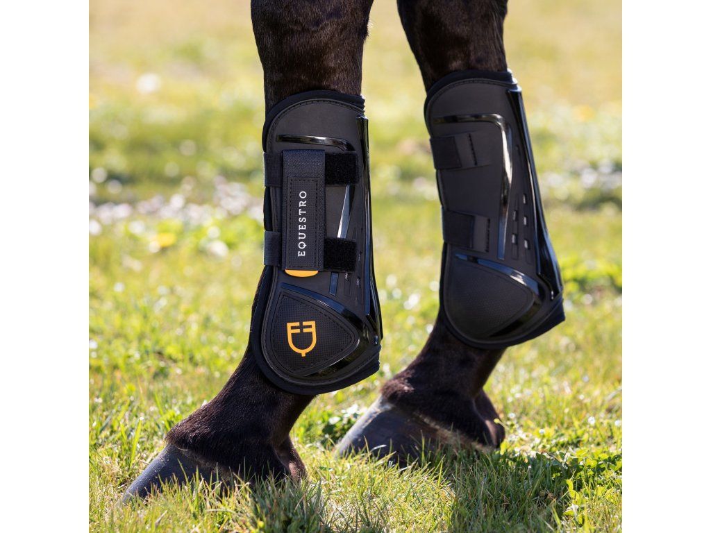 Velmi kvalitní šlachovky na přední nohy. Chrání šlachy koně před nárazy a odřením. Vyrobeny z thermoplastic polyuretanu. Neoprenová podšívka činí kamaše extrémně prodyšnými, nabízí vynikající ochranu pokožky a zabraňuje otlakům. Opatřeny ventilačními otvory, které pomáhají předcházet přehřátí šlach. Díky ergonomickému tvaru se dokonale přizpůsobí noze koně. Vybavené dvojitým zapínáním na suché zipy. Zdobené logem Equestro. Dodávané v páru. Ke kamaším lze dokoupit perfektně ladící strouhačky. K dispozici také v hnědé barvě. Vyráběny ve velikostech Pony, Cob a Full.