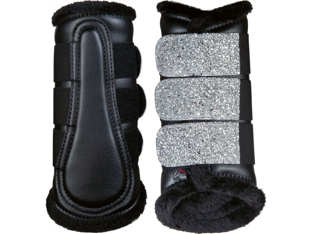 Elegantní univerzální kamaše polstrované syntetickým beránkem. Zdobené třpytkami na zapínání. Kamaše je možné využít na přední i zadní nohy či jako drezurní kamaše. Lze prát na 30°C, před praním je doporučeno zapnout suché zipy. Lze sušit v sušičce. Dodávané v páru.