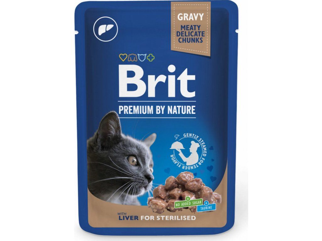 Kousky v omáčce s játry pro sterilizované kočky. Kompletní prémiové mokré krmivo pro sterilizované kočky. Varianty příchutí respektují přirozené preference koček i jejich nutriční potřeby z hlediska fáze věku či speciální výživy. Delikátní šťáva podtrhuje chuť masových kousků a dodá kočce potřebné tekutiny.
