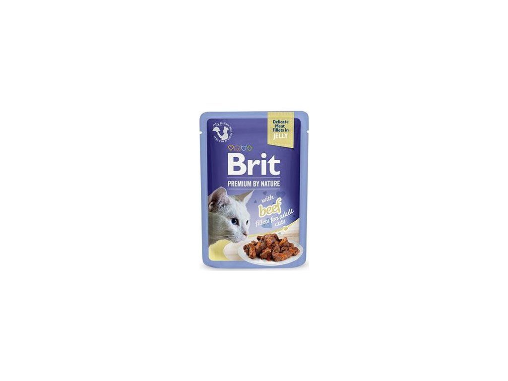 Brit Premium by Nature Cat Delicate Fillets in Jelly with Beef je kompletní vlhké krmivo pro dospělé kočky, filety s hovězím v želé. Delikátní šťavnaté masové filetky a la trhané maso poskytují kočkám ještě lepší zážitek, jelikož mají masové kousky mnohem reálnější podobu, a navíc jsou bez umělých aromat a bez konzervantů. Díky unikátní šetrné metodě vaření v páře je zachována originální vůně i chuť masa.