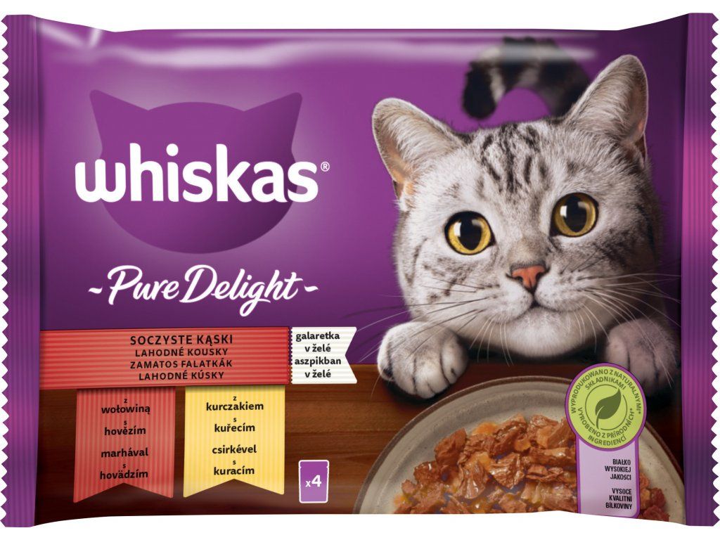 Kapsičky pro kočky Whiskas Pure Delight výběr v želé, 4x85 g