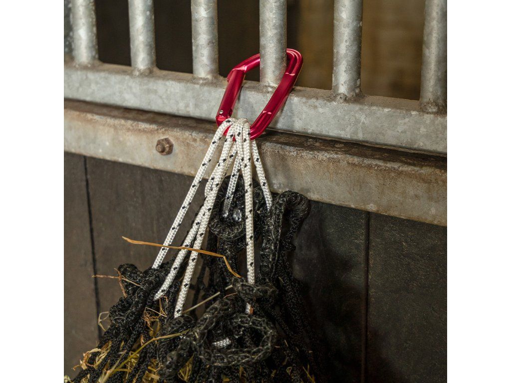 Pevná karabina je nepostradatelným pomocníkem v každé stáji. Skvěle se hodí k zavěšení a zajištění například sítí na seno, ale využijete ji i pro mnoho dalších účelů. Dodávaná po 1 ks.