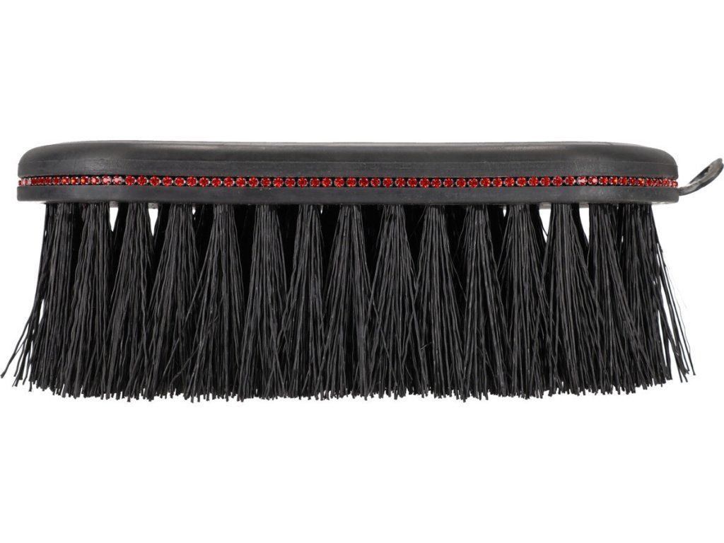 Kvalitní rýžový kartáč, který je vhodný pro účinné uvolnění nečistot ze srsti. Je vybaven černými a červenými štětinami, které zajišťují efektivní čištění. Kartáč je zdoben červenými kamínky a logem.