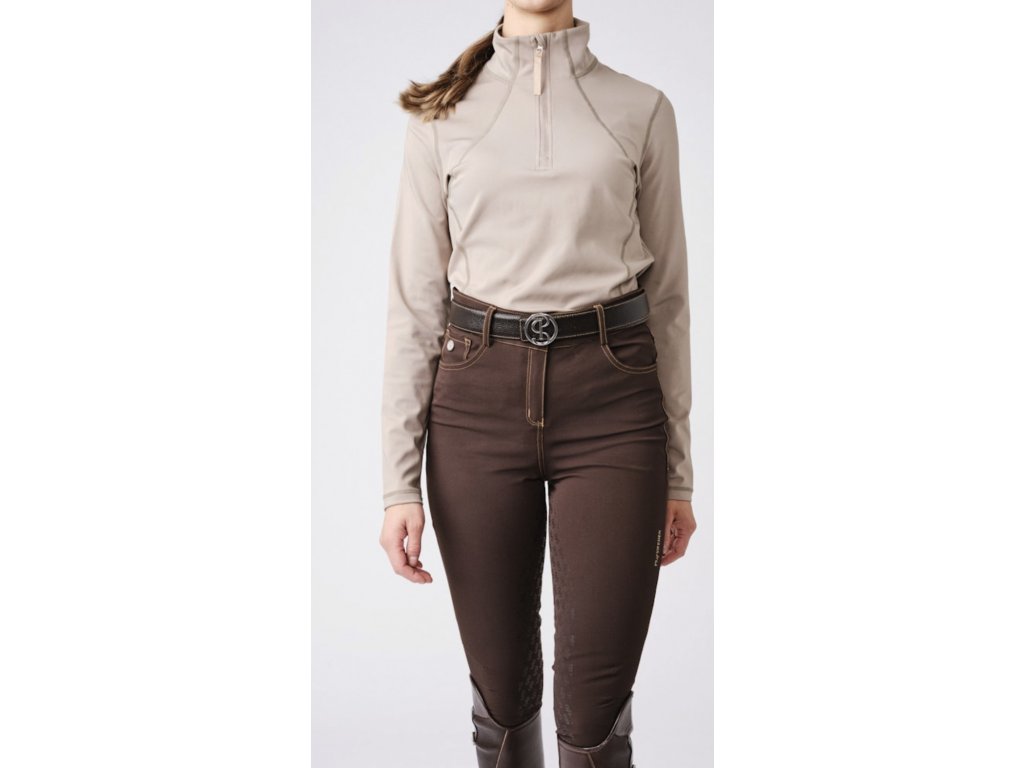Jezdecké rajtky se silikonovým gripem v po celé délce sedu, který zajišťuje dobrou přilnavost během jízdy. Jsou vyrobeny ze čtyřsměrnéhostrečového materiálu, který zajišťuje přilnavost materiálu a zároveň neomezuje jezdce v pohybu během jízdy či práce kolem koně. Vybaveny vysokým pasem, který zajišťuje jezdci maximální pohodlí. Nohavice jsou na koncích vybaveny kompresním materiálem, který usnadňuje jejich oblékání a svlékání. Vybaveny poutky na opasek a kontrastními švy, které lichotí postavě. Doporučujeme prát v pračce na 40 °C.