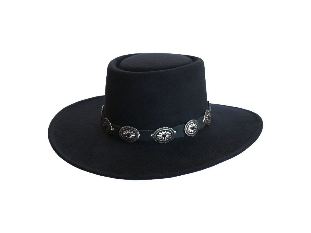 Mexický klobouk z vlněné plsti s ozdobnou koženou páskou. Vnitřní strana je vybavena měkkým polstrováním pro pohodlné nošení. Klobouk je tvarově stálý a je opatřený vnitřním nastavitelným páskem.