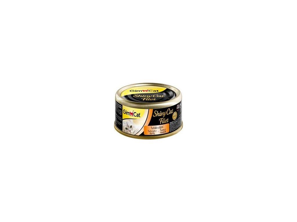 GimCat Shiny Cat Filet je konzerva s pořádnou dávkou tuňáka ve vývaru a dýně. Zvýšené množství bílkovin posiluje imunitní systém a celkové zdraví organismu kočky. Krmivo obsahuje pouze 2% tuku, je vhodné i pro kočky, které potřebují redukovat váhu nebo pro kočky kastrované. Kousky voňavé ryby jsou na kočičím jídelníčku opravdovou delikatesou, kterou jim můžete dopřát beze strachu o jejich váhu. Doplňkové krmivo pro dospělé kočky. Bez konzervačních látek, bez umělých barviv. Vysoce chutné a stravitelné. Přírodní aroma. Složení: tuňák (57 %), dýně (4 %), rýže, voda.