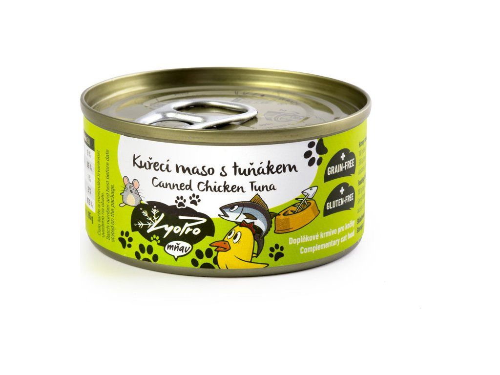 Konzerva pro kočky Lyopro, kuřecí maso s tuňákem, 85 g