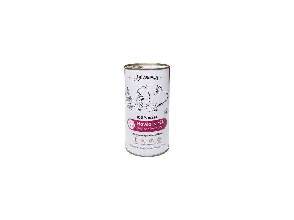 Konzerva pro psy ALL ANIMALS, hovězí s rýží, 1200 g