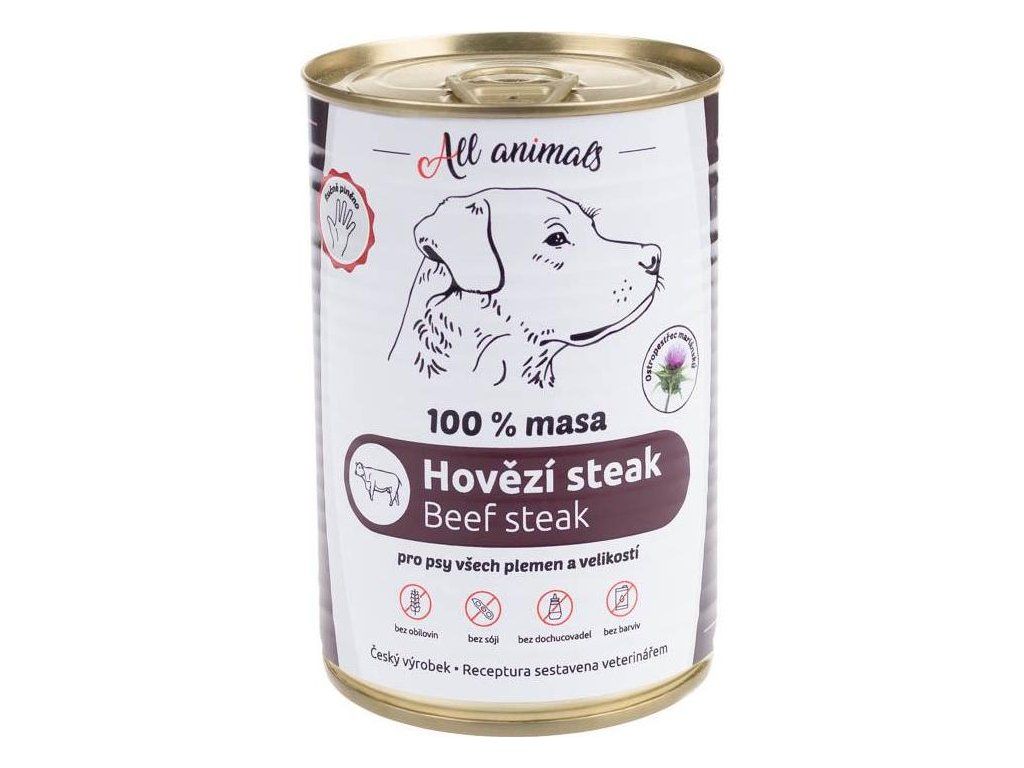 Konzerva pro psy ALL ANIMALS, hovězí steak, 400 g