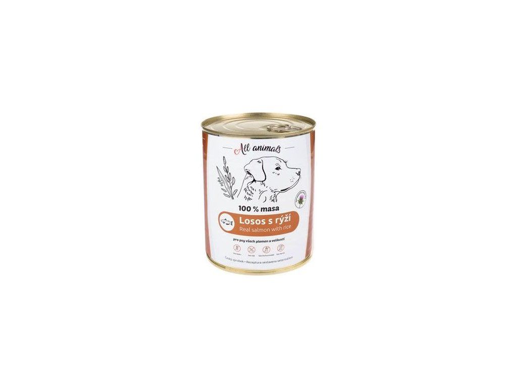 Konzerva pro psy ALL ANIMALS, losos s rýží, 800 g
