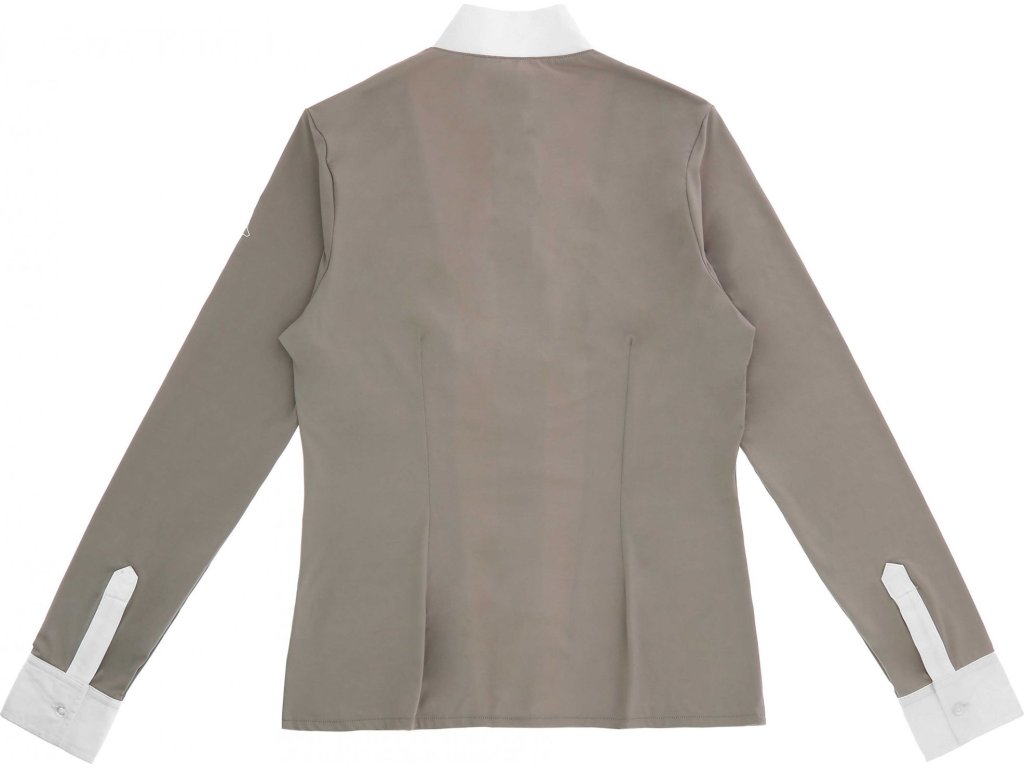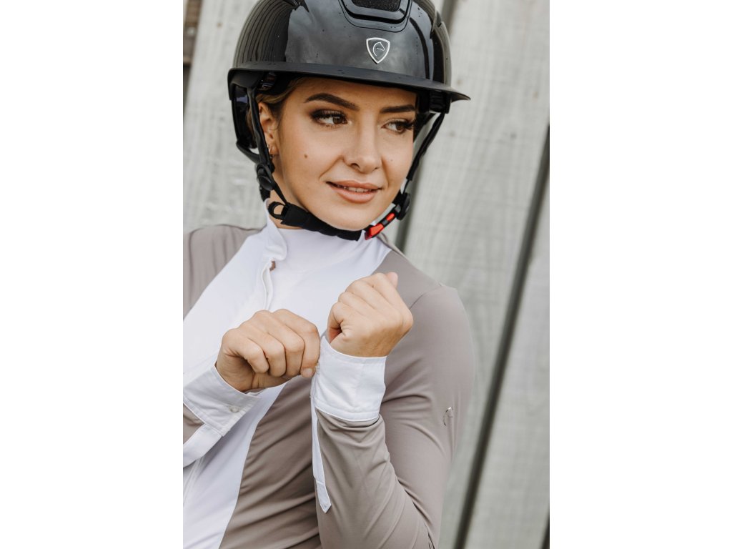 Závodní košile spojuje rafinovanou eleganci s výjimečným pohodlím. Díky lehké a pružné hlavní tkanině nabízí maximální volnost pohybu a příjemný pocit po celý den. Rychleschnoucí materiál zajišťuje optimální tepelnou regulaci a zároveň poskytuje ochranu před UV zářením. Košile je navržena s důrazem na funkční design. Nechybí bílý kontrastní límec s elastickým žebrováním, celopropínací zapínání na knoflíky ani průhledné síťované panely na rukávech a zádech, které zajišťují lepší ventilaci. Dlouhé rukávy poskytují plné zakrytí a zároveň podporují proudění vzduchu. Límec a lemy rukávů v popelínové úpravě dodávají sofistikovaný košilový efekt, zatímco diskrétní logo na rukávu podtrhuje elegantní charakter modelu. Přiléhavý střih navíc vytváří moderní a čistou siluetu.