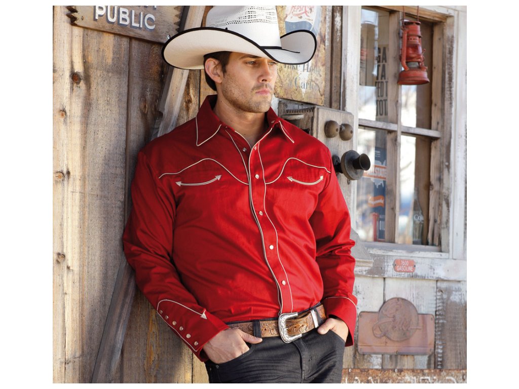 Kvalitní bavlněná westernová košile s límečkem a bílými detaily. Košile je zdobena odpovídajícími patentkami na zapínání a na rukávech. Nesmí chybět přední náprsní kapsy. Košile působí velmi jednoduše a elegantně.