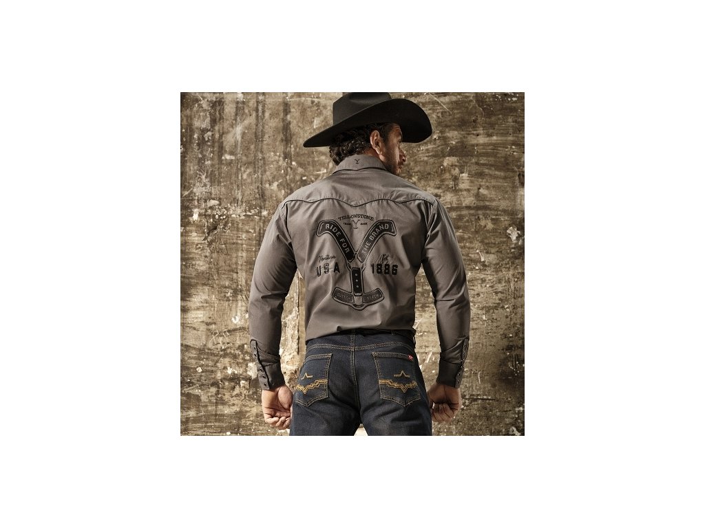 Pánská westernová košile Yellowstone s originální výšivkou na zádech zaujme svým autentickým stylem a precizním zpracováním. Westernový styl podtrhuje lemování v barvě výšivky, vykrojené kapsy a manžety se šesti knoflíky. Oficiální logo Yellowstone a výrazné písmeno Y jsou precizně vyšitá na náprsních kapsách, špičkách límce a zadní části krku. Díky jednoduchému střihu je tato košile skvělou volbou pro každodenní nošení.