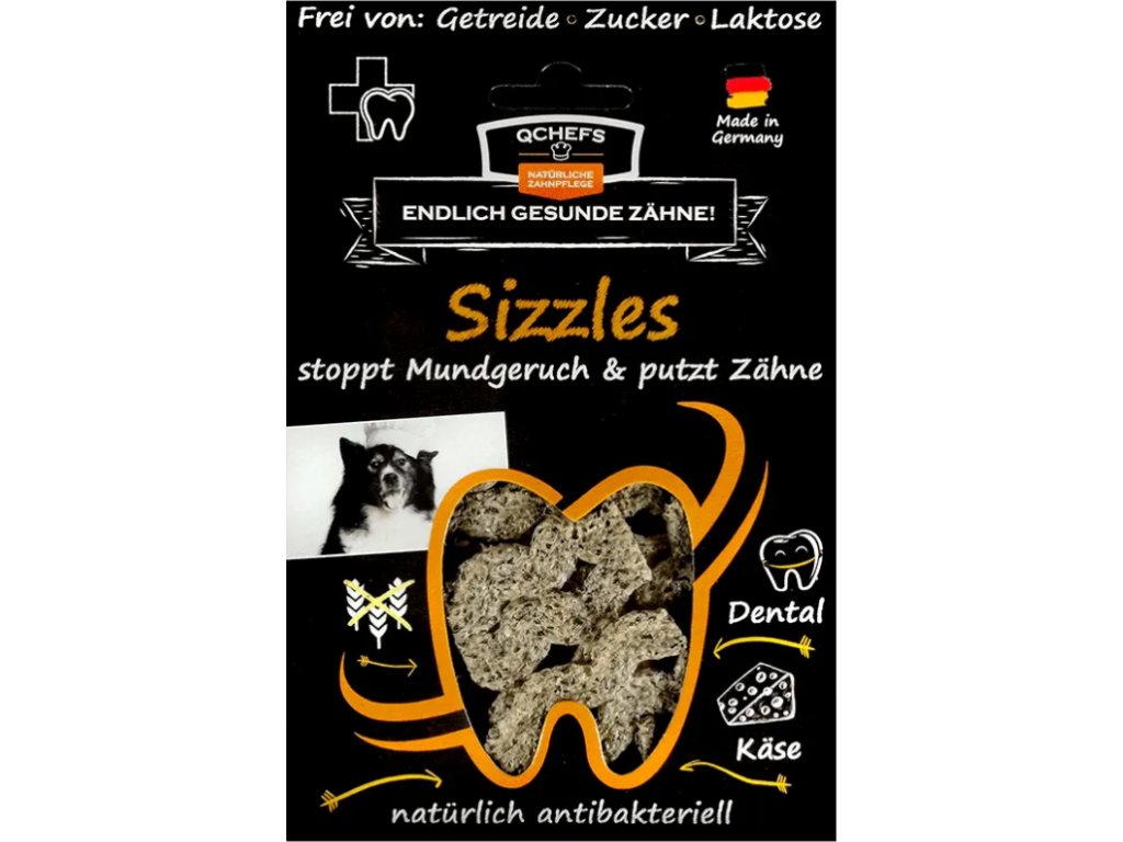 Křupání, žvýkání a spokojenost! Všichni psi – i ti, kterým je těžko se něčím zavděčit– je milují. A k tomu čistí zuby a odstraňují nepříjemný zápach. Tyto tenké žvýkací krekry přímo povzbuzují ke žvýkání. Jejich křupavá konzistence je tak oblíbená, že se u mnohých psů stala nezbytným každodenním rituálem před spaním. Krekry jsou vysoce stravitelné a vhodné i pro psy s citlivým žaludkem. Snadno dělitelné jednoduchým ohnutím pro pohodlné porcování. Přirozeně antibakteriální peptidy redukují bakterie a udržují vyváženou ústní mikroflóru. Snižují zápach z tlamy a udržují zuby čisté. Bez laktózy, bez přidaného cukru a s nízkým obsahem tuku a kalorií. Výborná svačinka! Zdravý pamlsek pro psy. Zabraňuje zápachu z tlamy a vyrovnává se s povlakem a zubním kamenem. Pro kontrolu zubního kamene a při jeho vyšším výskytu používejte raději Vločky na čištění zubů pro psy od QCHEFS.