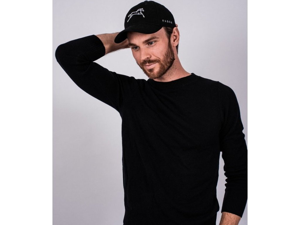 Pohodlná zimní pletená čepice v černé barvě, vepředu ražené silikonové logo koně Fager, unisex, jedna velikost.