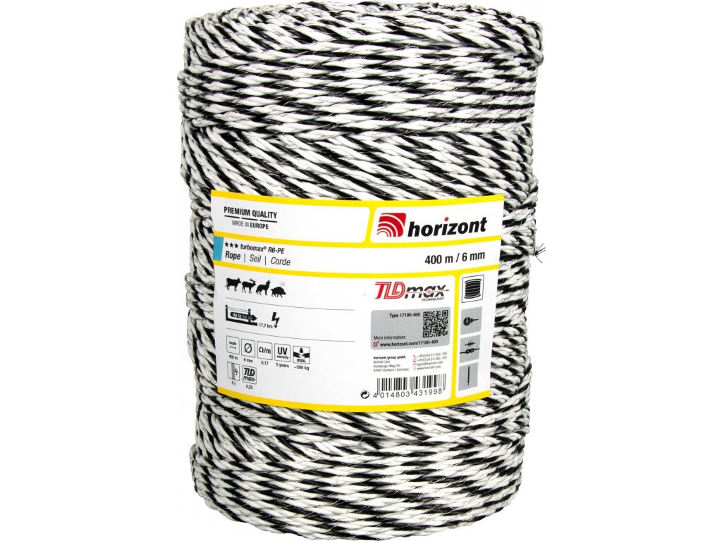 Lanko na elektrický ohradník Turbomax R6-PE Horizont, 400 m, 6 mm, bílé/černé