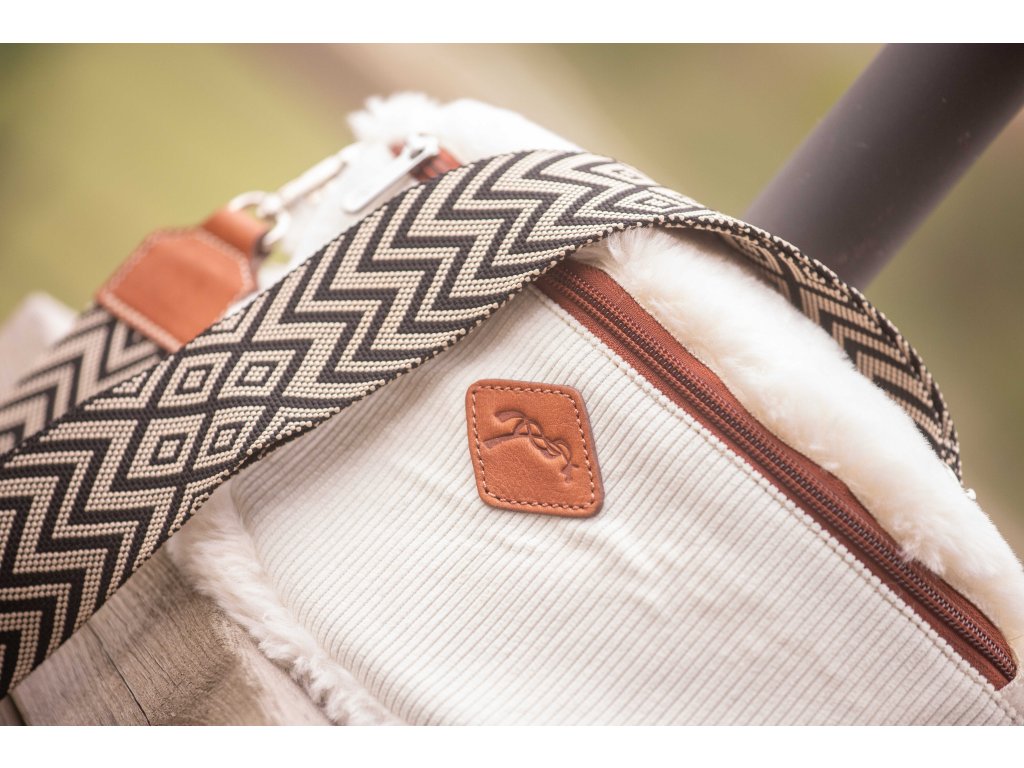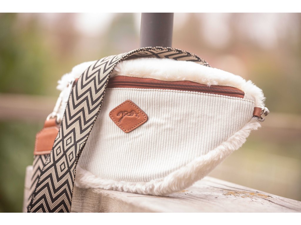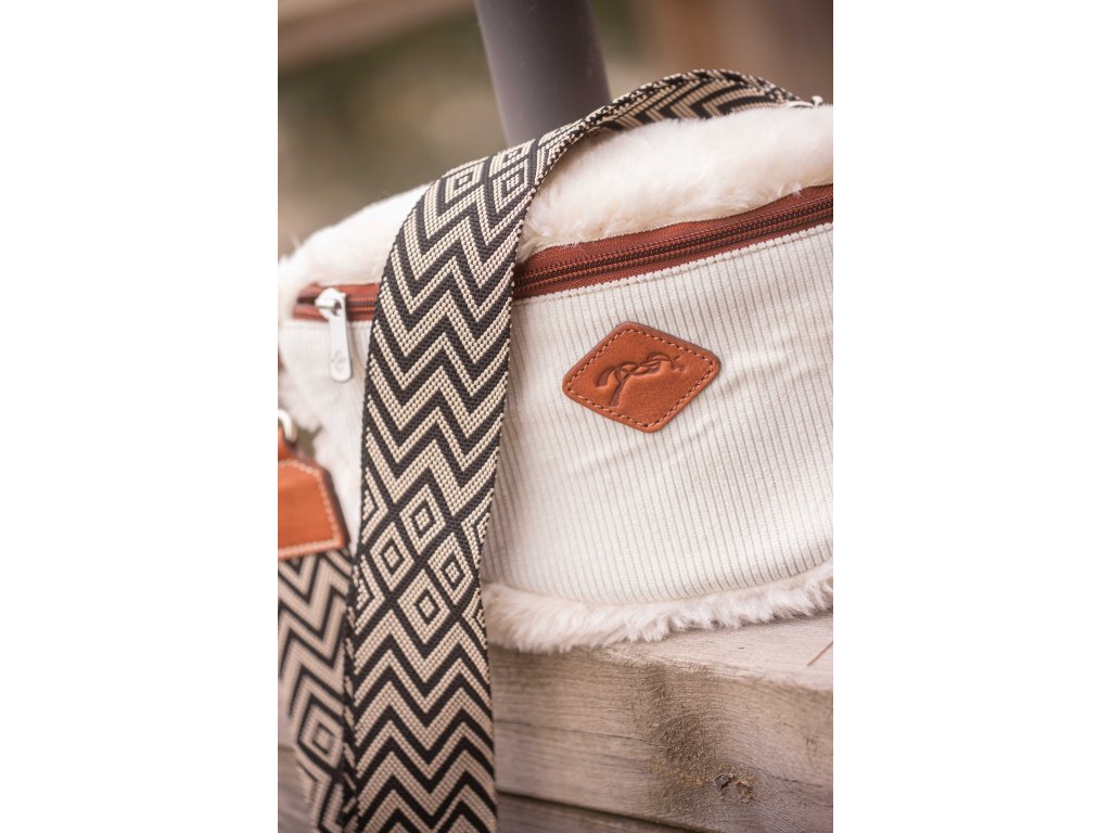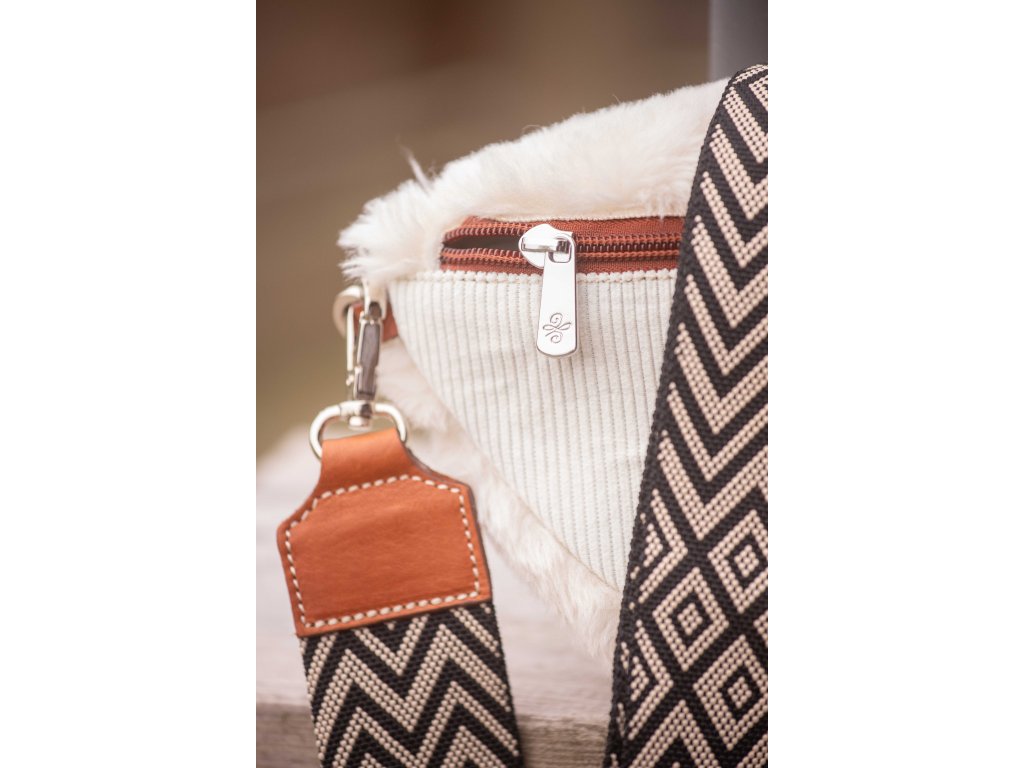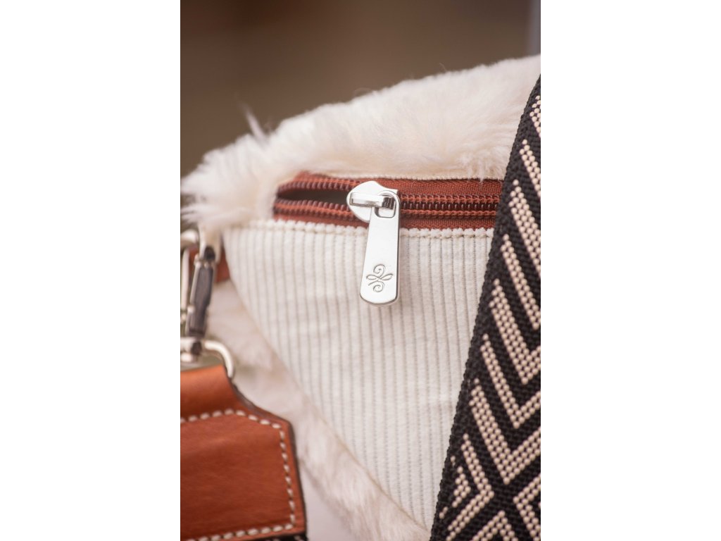 Ledvinka Aliz je vyrobená z kombinace umělé kožešiny a manšestru. Je ozdobená kontrastním zipem v barvě cognac. Na přední straně najdete kožený štítek s vyraženým logem Penelope, který ji dodává elegantní vzhled. Součástí je široký nastavitelný ramenní popruh s chevronovým vzorem. Kombinace umělé kožešiny a manšestru vytváří hřejivý a zimní vzhled.