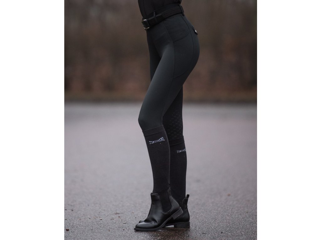 Dámské legíny vhodné ať už na ježdění nebo jako každodenní oděv do stáje. Jsou extrémně pohodlné a elastické. Jednoduchý, klasický vzhled připomínající rajtky, ale budete se v nich cítit příjemně stejně jako v legínách. Jejich látka byla speciálně vytvořená pro Fager. Díky své prodyšnosti jsou jako dělané do teplých letních dnů, ale zároveň vás udrží v teple, jakmile se ochladí. Tkanina je v jemném lesku s repelentním povrchem odpuzujícím špínu a prach. Legíny mají vysoký pas s očky na pásek, falešné zadní kapsy a kapsy na mobil na každém stehně ozvláštněny logem Fager. K dispozici v různých barevných provedeních, s plným sedem (grip téměř po celé délce vnitřní strany nohou) nebo s polovičním sedem (grip na kolenou).