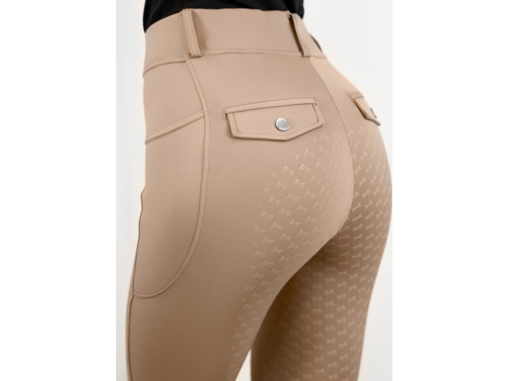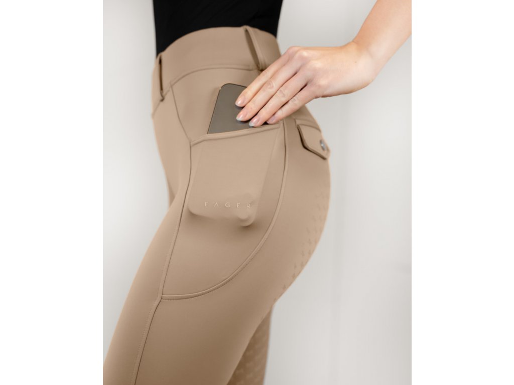 Dámské legíny vhodné ať už na ježdění nebo jako každodenní oděv do stáje. Jsou extrémně pohodlné a elastické. Jednoduchý, klasický vzhled připomínající rajtky, ale budete se v nich cítit příjemně stejně jako v legínách. Jejich látka byla speciálně vytvořená pro Fager. Díky své prodyšnosti jsou jako dělané do teplých letních dnů, ale zároveň vás udrží v teple, jakmile se ochladí. Tkanina je v jemném lesku s repelentním povrchem odpuzujícím špínu a prach. Legíny mají vysoký pas s očky na pásek, falešné zadní kapsy a kapsy na mobil na každém stehně ozvláštněny logem Fager. K dispozici v různých barevných provedení, s plným sedem (grip téměř po celé délce vnitřní strany nohou) nebo s polovičním sedem (grip na kolenou).