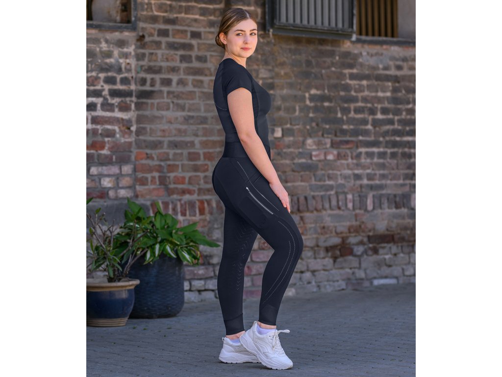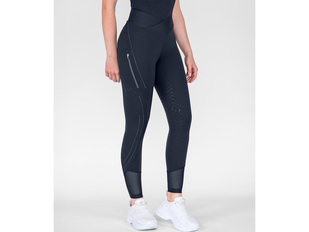 Jezdecké legíny s vyšším pasem a protiskluzovým gripem po celé délce sedu. Vyrobeny jsou z kvalitního materiálu, který je elastický a prodyšný. Použitý materiál je také vodoodpudivý. Již zmíněný vysoký pas má střih ve tvaru V, tento střih nabízí vysoké pohodlí při jízdě, ale i při běžném nošení. Nohavice jsou opatřeny vzdušnou síťovinou, ideální na léto. Legíny jsou dále vybaveny praktickou kapsou na zip, která je vhodná na mobilní telefon. Zdobeny jsou nápisy E·L·T a propracovanými detaily. Jedná se o malé průduchy vzduchu, které jsou vyrobeny pomocí laseru.