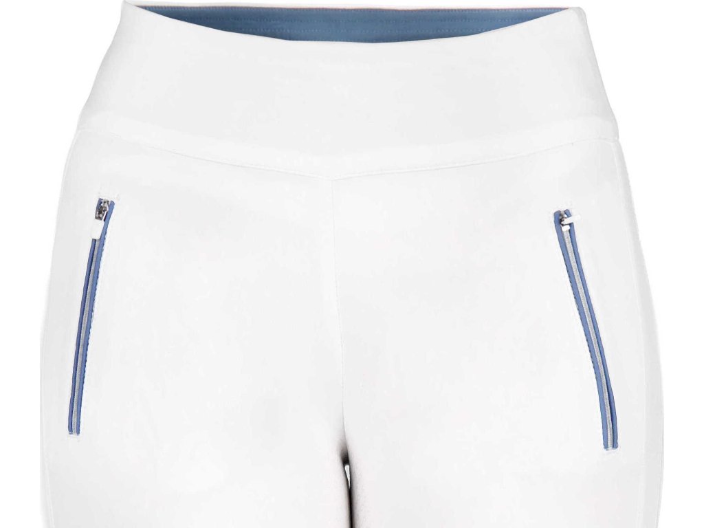 Tyto pohodlné jezdecké legíny jsou vyrobeny z extrémně elastické a prodyšné tkaniny, která zajišťuje volnost pohybu i v náročných podmínkách. Vybaveny jsou vysokým pasem s kontrastní vnitřní podšívkou, silikonovým gripem po celé délce sedu pro maximální přilnavost a bezpečnost. Mají dvě přední kapsy na zip s kontrastním lemováním pro praktické uložení drobností.