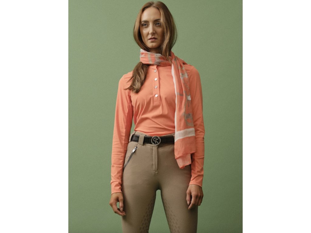 Stylový dlouhý šátek, který lze využít na mnoho způsobů. Šátek lze nosit jako ochranu před větrem kolem krku, ale také jako módní pásek či jako čelenku do vlasů. Vyroben z příjemných přírodních vláken, která jsou měkká na omak a velice lehká, proto je šátek vhodný zejména během teplejších dnů. Zdoben celoplošným potiskem s koňskou tematikou.