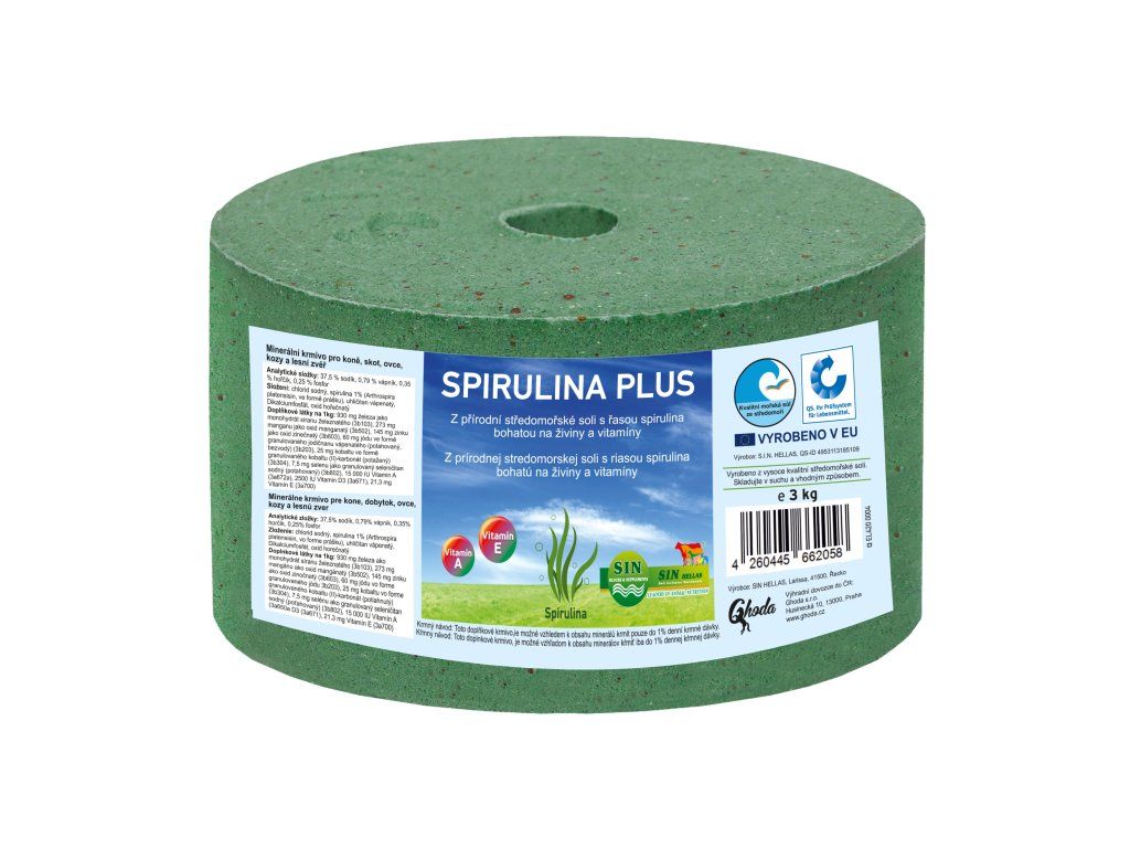 Spirulina (Arthrospira platensisin, zde ve formě prášku) je zdraví prospěšná řasa. Řadí se mezi "super potraviny" a to proto, že tato výjimečná a čistě přírodní řasa obsahuje cenné, organicky vázané vitamíny a stopové prvky a také všechny esenciální aminokyseliny, které mohou podporovat růst a zdravý vývoj svalů i regeneraci buněk. Spirulina obsahuje vitamín A (betakaroten), B1, B2, B3, B5 B6, B9 (kyselina listová), B12, K i biotin, čímž může velmi významně podpořit celkový zdravotní stav a imunitu koní. Přirozený obsah minerálů jako je mangan, zinek, měď, selen, vápník, hořčík, fosfor, jód a chrom je už pouze třešinkou na dortu. Spirulina může pozitivně ovlivnit i zažívání a metabolismus, je tedy vhodná i pro koně s nadváhou.