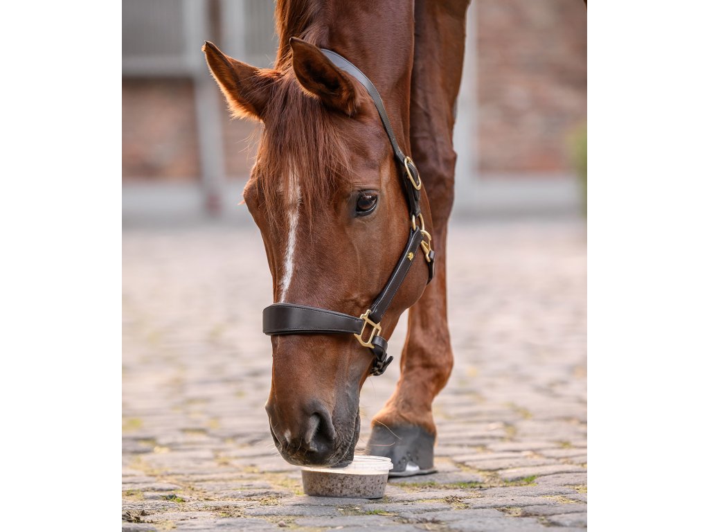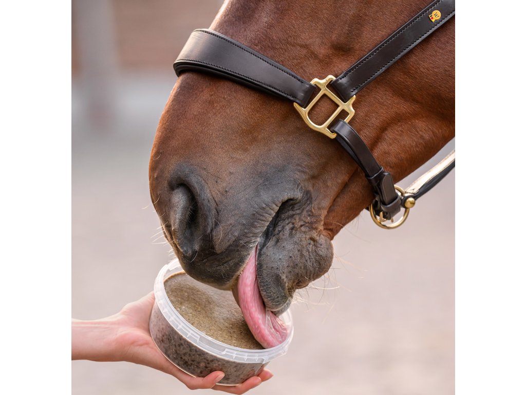 Doplňkové krmivo pro koně ve formě lizu. Vhodné jako odměna, svačina mezi krmením nebo účinné rozptýlení ve stresových situacích, jako je kování, veterinární ošetření či stání v boxu. Obsahuje glukosamin a MSM, které jsou běžně využívány jako součást péče o pohybový aparát.