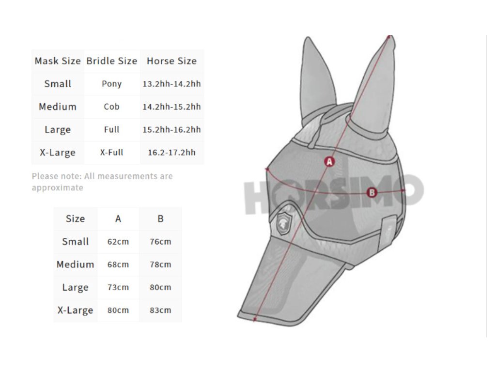 Vysoce kvalitní maska proti hmyzu s ochranou uší a nozder. Maska kombinuje odolnost a pohodlí. Silná černá ochranná síťovina blokuje škodlivé UV záření a díky své pevnosti je ideální pro použití ve výběhu. Perfektní střih, vyztužení v oblasti očí a měkké, prodyšné bambusové polstrování zajišťují komfort a minimalizují riziko odírání. Prodyšné síťované uši chrání před hmyzem a integrovaná část přes nozdry poskytuje dodatečnou ochranu. Vrchní šedá 3D karbonová síťovina umožňuje dostatečné proudění vzduchu, aby kůň zůstal v chladu. Elastický lem zajišťuje perfektní přizpůsobení. Maska je vybavena otvorem pro kštici a pevným zapínáním na suchý zip.