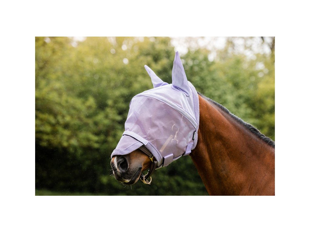 Unikátní a nejprodávanější maska proti hmyzu RAMBO od výrobce Horseware. Vyrobena z velice odolného a zároveň z lehkého polyesterového síťového materiálu. Materiál odráží sluneční paprsky, a tím poskytuje až 70% ochranu před UV zářením. Díky vyztužení drží tvar v prostoru očí a zajišťuje tak naprostý komfort při nošení. Oblast uší také chráněna elastickým polyesterovým materiálem. Maska je vybavena ochranou nozder, kterou lze odepnout pomocí suchého zipu. Příjemný fleecový lem zabraňuje odírání a znemožňuje vlétnutí hmyzu pod masku. Celkové zapínání masky na suchý zip. Dostupná ve více barevných variantách.