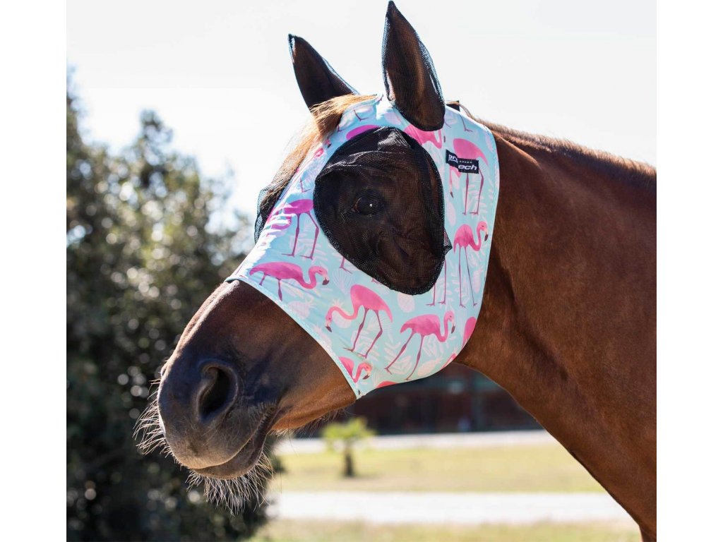 Maska proti hmyzu z elastického a hladkého materiálu lycra. Maska poskytuje pohodlí a vysokou prodyšnost. Přetahuje se přes hlavu a nabízí perfektní přízpůsobení. Opatřena je odolnou síťovinou na uších a očích. Síťovina poskytuje dostatek prostoru a nebrání ve výhledu. K dispozici ve více veselých motivech. Dostupná ve velikostech S, M, L (PONY, COB, FULL).