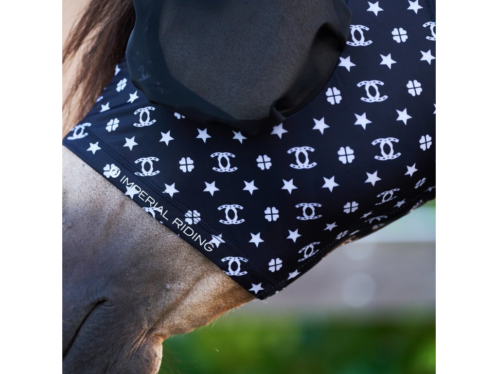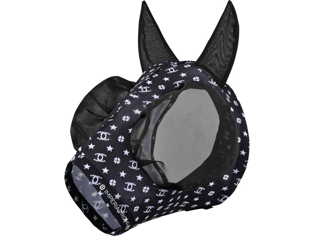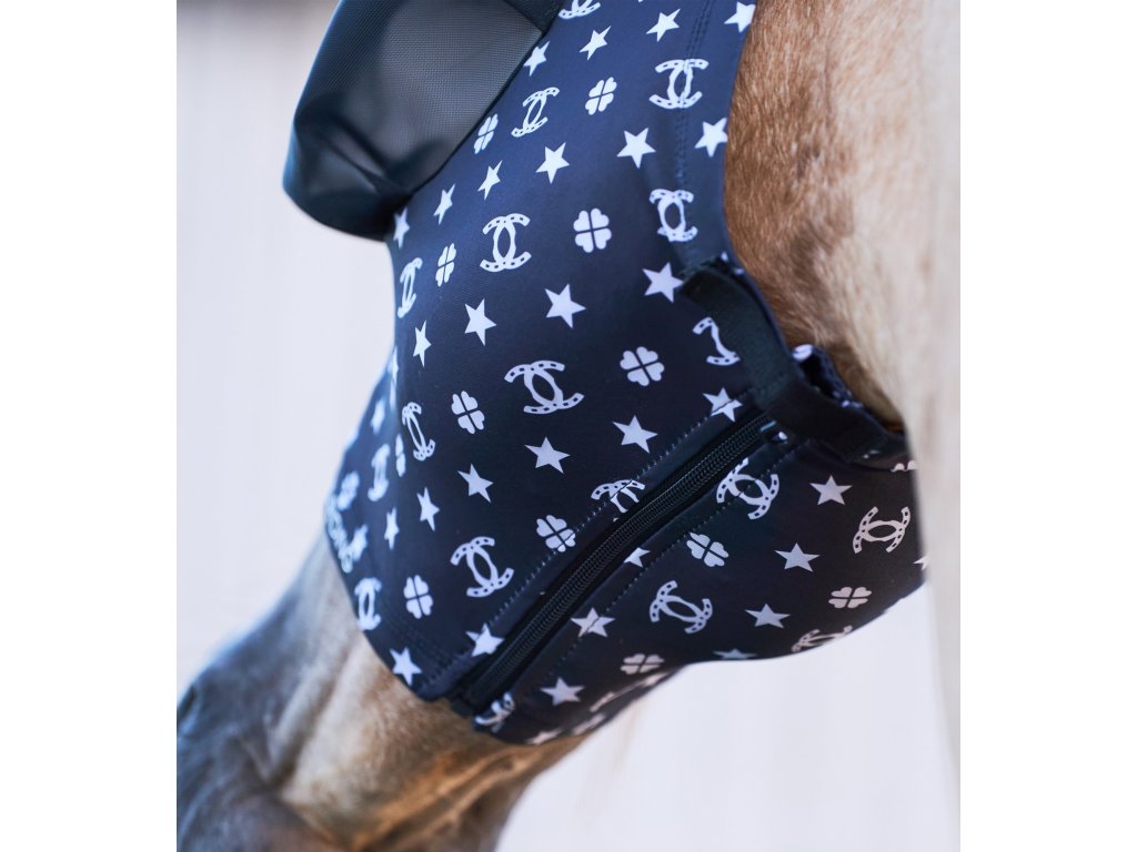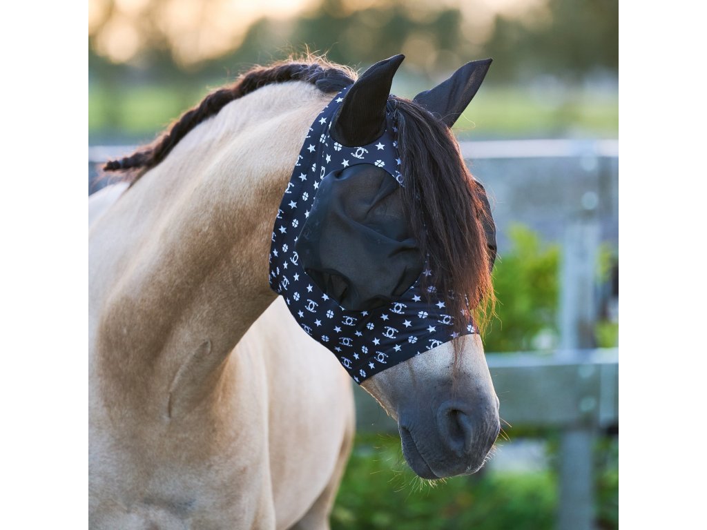 Stylová maska proti hmyzu, která je vybavena ochranou uší před hmyzem. Maska je ve spodní části vybavena zapínáním na zip. Díky kompresnímu materiálu maska bezpečně drží na jednom místě a nikam se neotáčí. V oblasti očí a uší je vybavena prodyšnou síťovinou, která koně chrání před hmyzem, ale zároveň poskytuje dostatečnou prodyšnost. Síťovina je v oblasti očí vypouklá, tak aby nepřišla do kontaktu s koňským okem. Lze ji využít během ježdění, ale i jako masku do výběhu. Maska má UV ochranu.